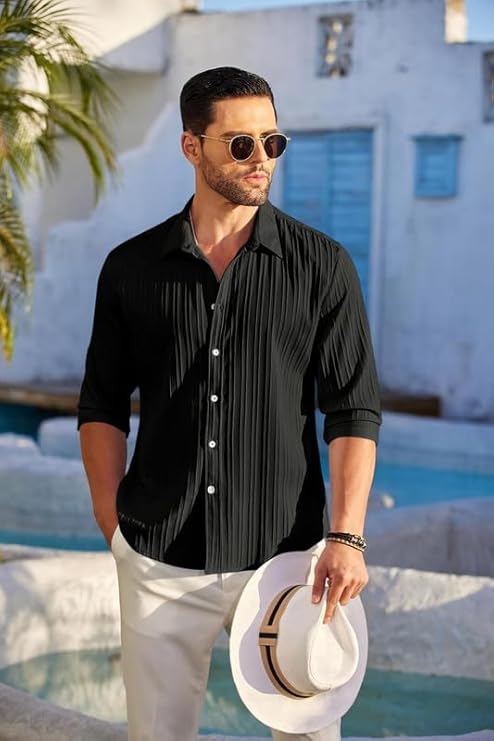 This men’s casual shirt is crafted from breathable, lightweight popcorn cotton fabric designed to keep you cool and comfortable during summer. It features a regular relaxed fit that offers freedom of movement without being too tight or loose. The shirt comes with a classic spread collar and button-down closure, creating a polished look suitable for multiple occasions including casual outings, business work, dates, parties, and vacations. Its solid pattern and textured fabric add subtle sophistication to your wardrobe. Easy to care for with hand or machine wash in cold water (no bleach), and low iron recommended. Made in India, this versatile shirt makes a great gift for family, friends, or boyfriends and is ideal for all seasons and events such as holidays, weddings, and travel.